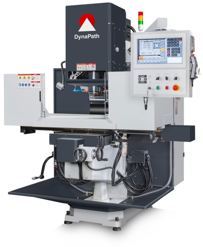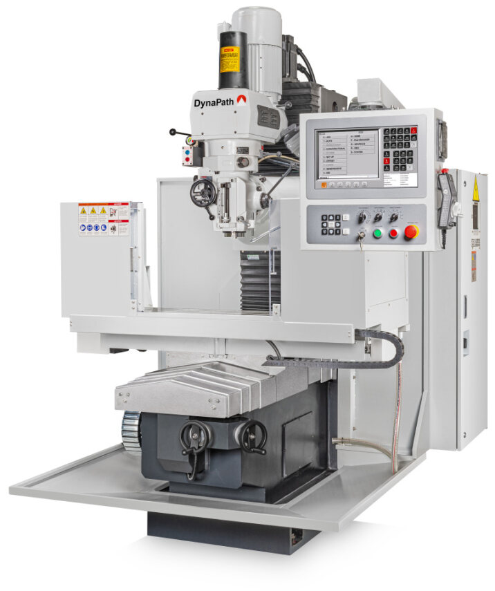 La fraiseuse à genou hybride DynaPath VKT avec broche CAT40 de 6000 tr/min, changeur d’outil de 4 logements, table de 57.9” x 12.6”, taraudage rigide, cycle de Threadmill, programmation conversationnel et bien plus !!!